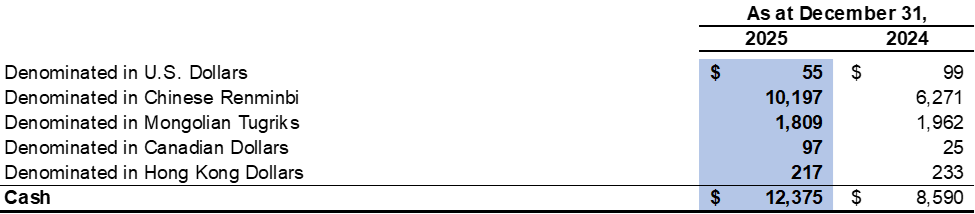 The Company's cash is denominated in the following currencies: