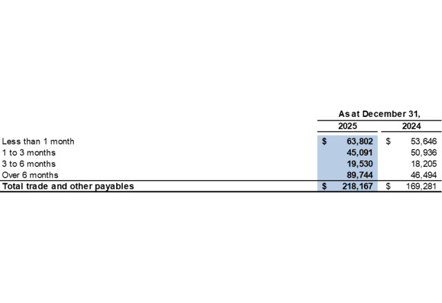 The aging of the Company's trade and other payables, based on invoice date, is as follows: