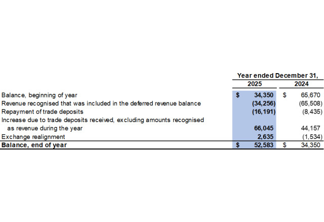 At December 31, 2025, the Company had deferred revenue of $52,583, which represents cash prepayments from customers for future coal sales (2024: $34,350).