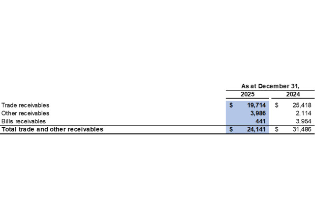 The closing allowances for trade and other receivables as at December 31, 2025 reconcile to the opening loss allowances as follows:
