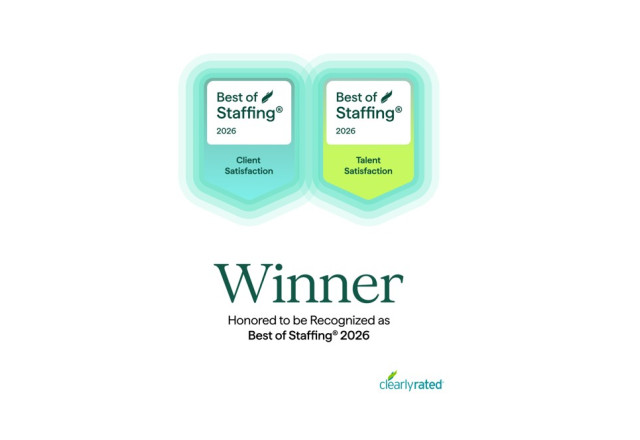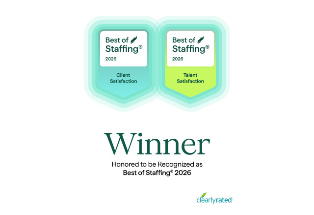 ClearlyRated's Best of Staffing® Award is the only award in the U.S. and Canada that recognizes staffing agencies that have proven superior service quality based entirely on ratings provided by their clients, placed talent, and internal employees. Award winners are showcased by city and area of expertise on ClearlyRated.com-an online business directory that helps buyers of professional services find service leaders and vet prospective firms with the help of validated client ratings and testimonials.