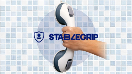 According to the official StableGrip website at nodrillgrabbar.com, StableGrip Safety Bar is a no-drill, suction-based bathroom handle designed to provide a point of stability in the bathroom. The product uses what the company describes as a dual suction and lock-latch system that attaches the bar to smooth, non-porous surfaces.