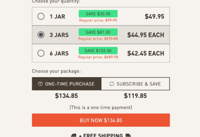 Total Cost for 3 Jars: $134.85