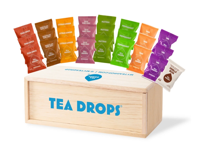 Each drop is individually wrapped and portioned, making it ideal for use at home, during office breaks, or on the go. Popular varieties include Matcha Green Tea, Chai Spice, Citrus Ginger, and Sweet Peppermint. Seasonal flavors like Pumpkin Spice and Cranberry Pie have also attracted a loyal following. Customers can buy single boxes, curated samplers, or build custom tea boxes on the brand's official website.