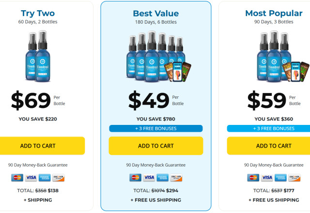 3 Tinnitrol Bottles (90-Day Supply): $177 Total ($59/Bottle), Most Popular.