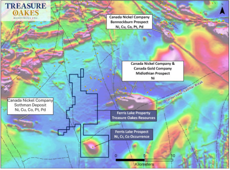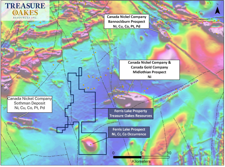 "We are excited by the results of the NI 43-101 report and the granting of our drilling permit at Ferris Lake," said Jim Renaud, Chief Executive Officer of Treasure Oakes Resources Inc. "The combination of scale, geologic setting, and early mineralogical indicators underscores the potential of this property to host significant nickel-cobalt-chromium mineralization. With drilling now approved, we look forward to advancing exploration and unlocking potential value for our shareholders."