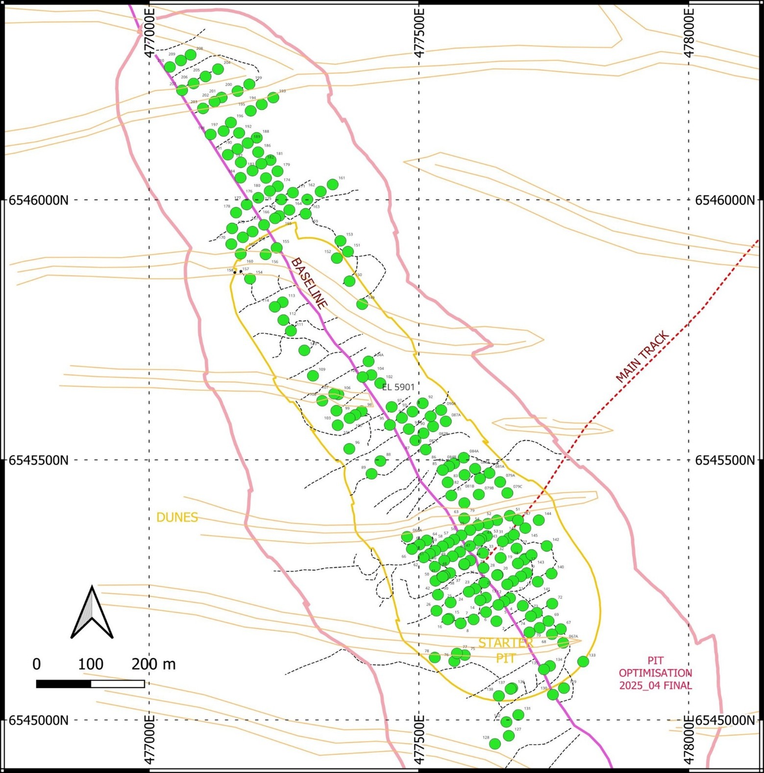 Phase 2 RC upgrade drilling is planned for March to June 2026, targeting conversion of all other Tunkillia OSS modelled open pit mineralisation to JORC (2012) ‘Indicated' category. Diamond drilling (DD) will infill and expand geotechnical and metallurgical data to support further pit optimisation and feasibility studies.