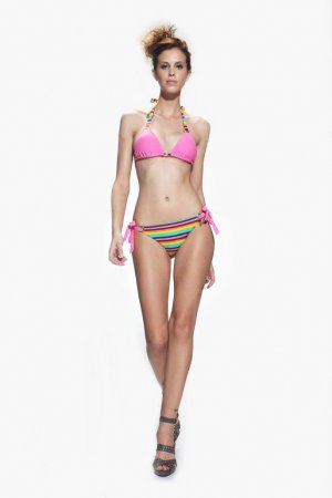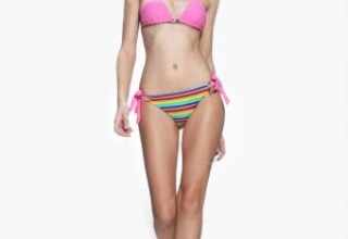 London fashion designer and lingerie enthusiast Youlia Nageytseva says "The swimwear range that Suzie May has released for this summer is spot on (no pun intended) in terms of both style and colour. The main theme running through the collection is polka dots and stripes in black and white. To mix it up a little they have also introduced some interesting multicoloured leaf, paisley and abstract designs. They've made a bold decision offering contrasting sets such as bikini's where the top and bottom are different colours but managed to pull off the look by using opposite colours on the tie strings. Their pink and multicoloured striped bikini is a great example of how refreshing this style can be and is sure to be extremely popular this summer. This theme continues with the 'beautiful black and white bikini' which has spots on one cup and stripes on the other while the bottom half has spots with a striped waistband."