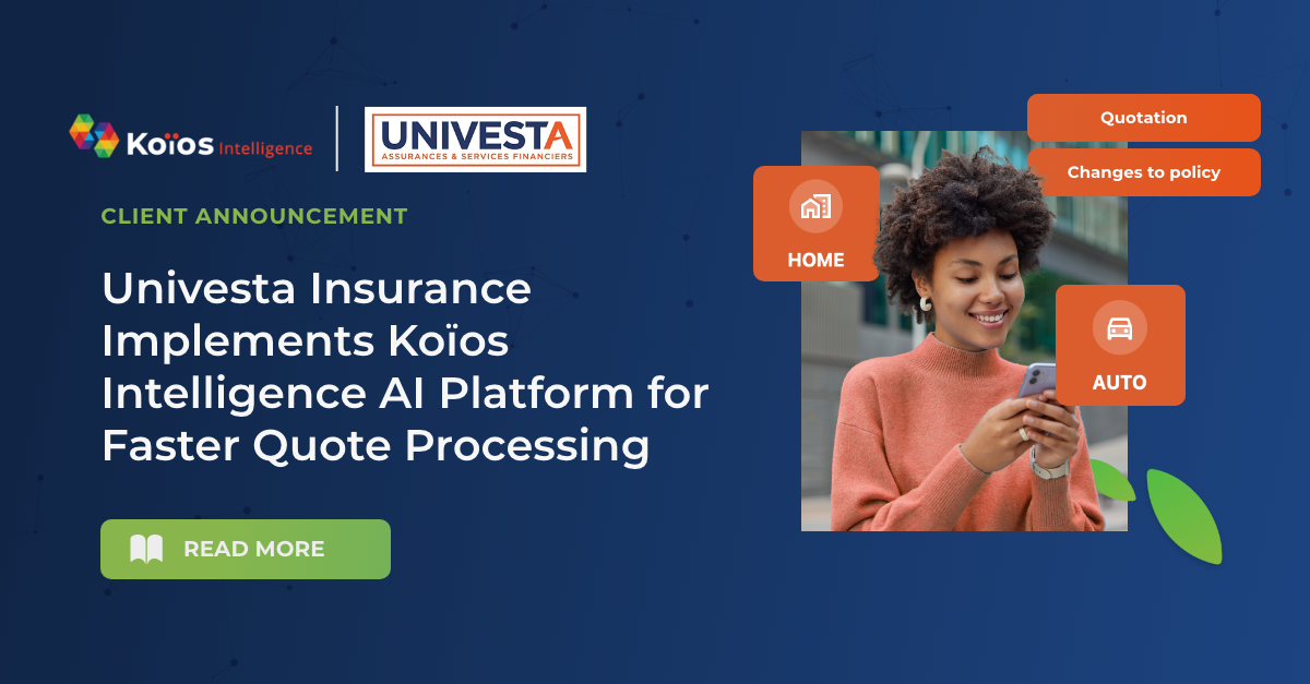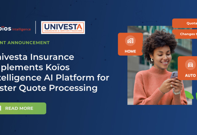 The implementation will allow Univesta brokers to reallocate time spent on administrative tasks to client consultations. Koïos Intelligence clients typically see a 37% increase in sales conversion rates, a 45% reduction in underwriting time, and a 50% time saving in quote processing thanks to automated workflows that handle routine inquiries and quote requests while routing complex requests to the appropriate team members.