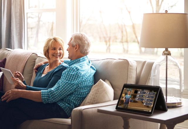 Interactive health engagement: reminders for medication and vitals, guided physical therapy and fitness, cognitive games for focus, memory, and motor skills.