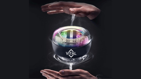 According to the manufacturer's marketing materials, Vital Wrist Ball is a handheld gyroscopic exercise device designed to help strengthen hands, wrists, and forearms through what the company calls Progressive Gyroscopic Resistance Technology.