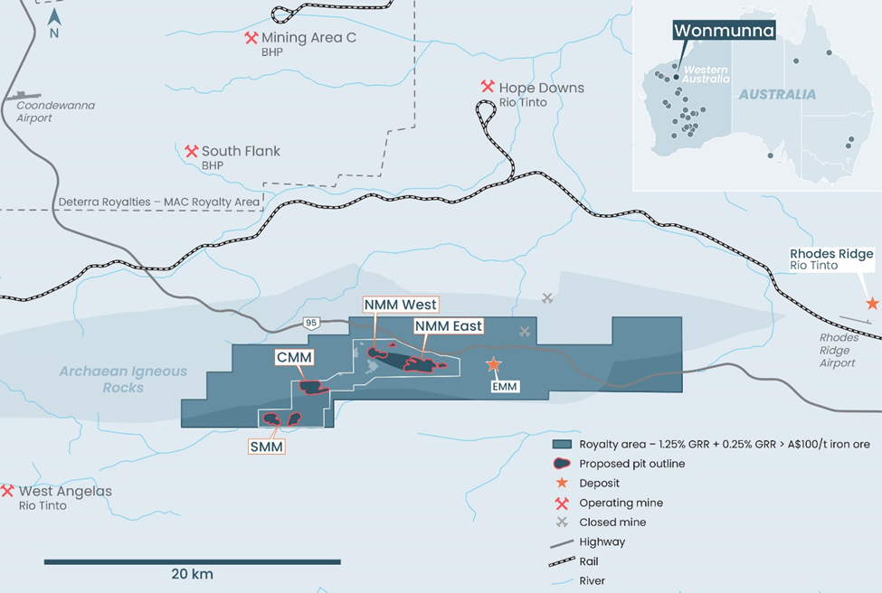 Figure 1: Wonmunna royalty tenure in relation to large Pilbara iron ore mines.