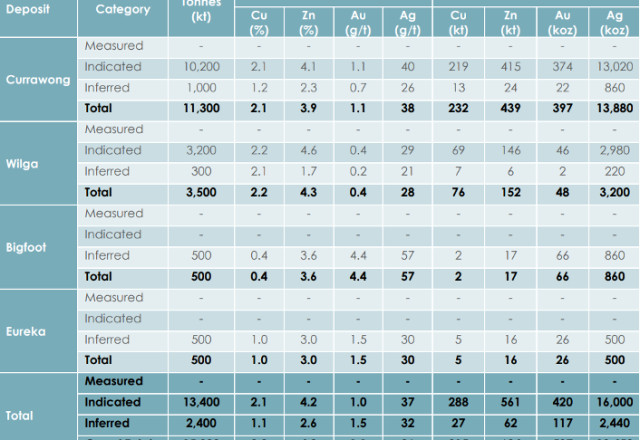 The historical Wilga mine produced copper and zinc and was operated from October 1992 to July 1996(6).