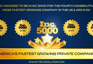WASHINGTON, August 28, 2018 (Newswire.com) - Inc. magazine recently revealed vTech Solution, Inc. is No. 1823 on its 37th annual Inc. 5000, the most prestigious ranking of the nation’s fastest-growing private companies. The list represents a unique look at the most successful companies within the American economy’s most dynamic segment—its independent small businesses. Microsoft, Dell, Domino’s Pizza, Pandora, Timberland, LinkedIn, Yelp, Zillow, and many other well-known names gained their first national exposure as honorees on the Inc. 5000.