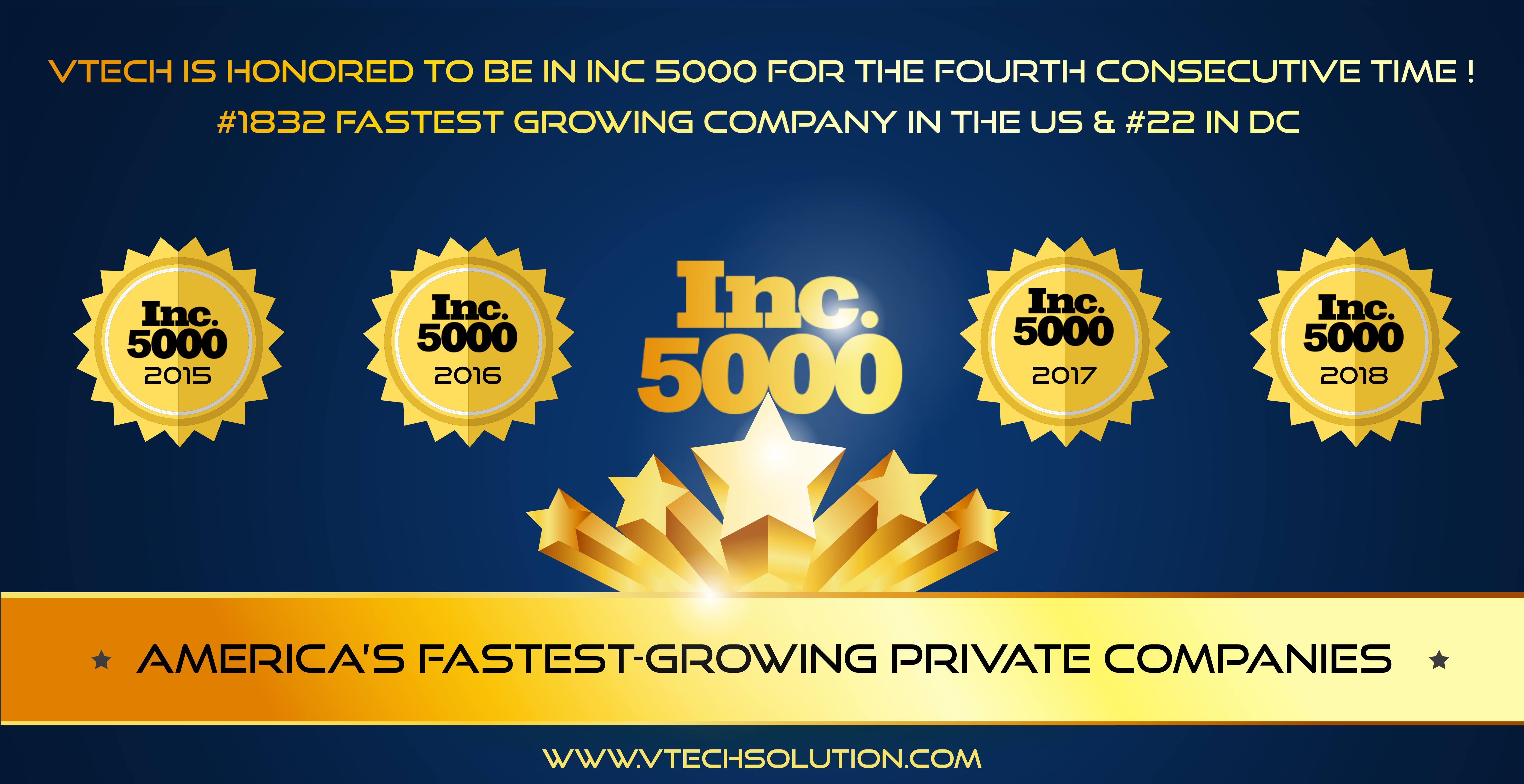 vTech Solution, Inc. Has Been Named on Inc. 5000 List 2018 for the Fourth Consecutive Time