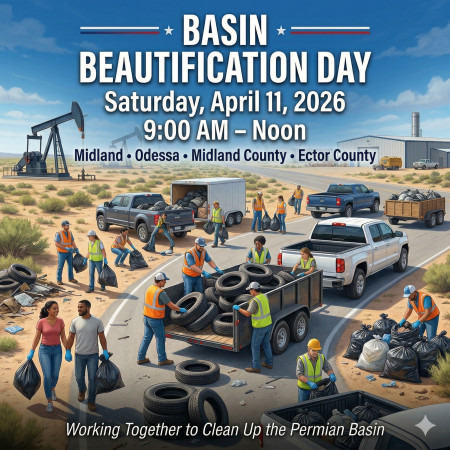 A second Basin Action Day is scheduled for Saturday, April 11, 2026, from 9:00 a.m. to noon. The event is part of the broader Basin Beautification Project and will focus on cleaning up litter and waste across Midland, Odessa, Midland County and Ector County. For more information visit www.basinbeautificationproject.com.
