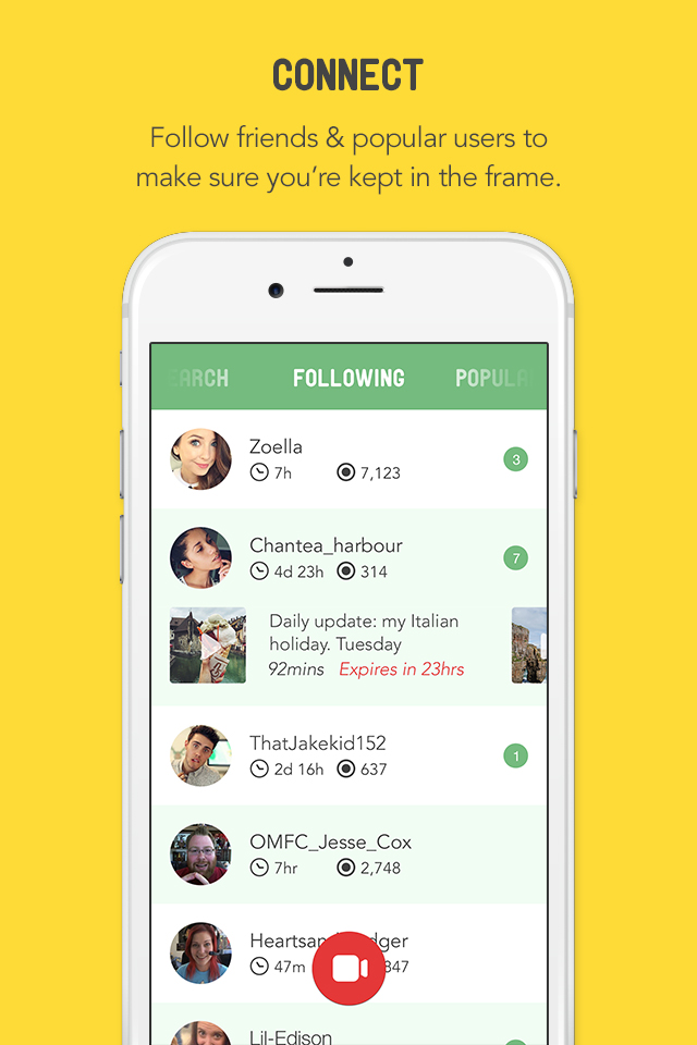 Users can get creative with in the moment, totally unedited footage laid bare. By the tap of a screen you can share what you want with friends and followers. A minimum of 15 seconds to a max of 60, only one video per day, and each will expire after 7 days. Making our new network full of fresh and revived content each time you open the app.