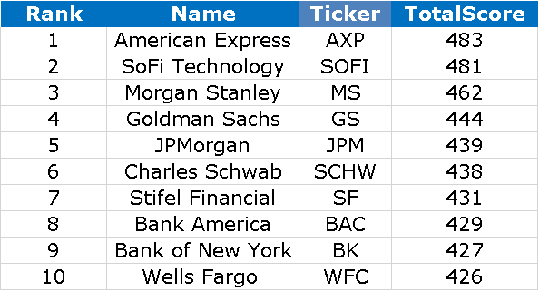 A number of institutions, including Zions Bancorporation, NA (ZION) and Western Alliance (WAL) fell significantly in this quarter's rankings due to concerns about credit losses arising from alleged fraud involving collateral backing a real estate loan. Losses on commercial and multifamily real estate loans continue to rise, adding to investor concerns about collateral and potential fraud.