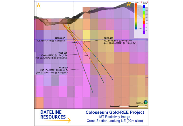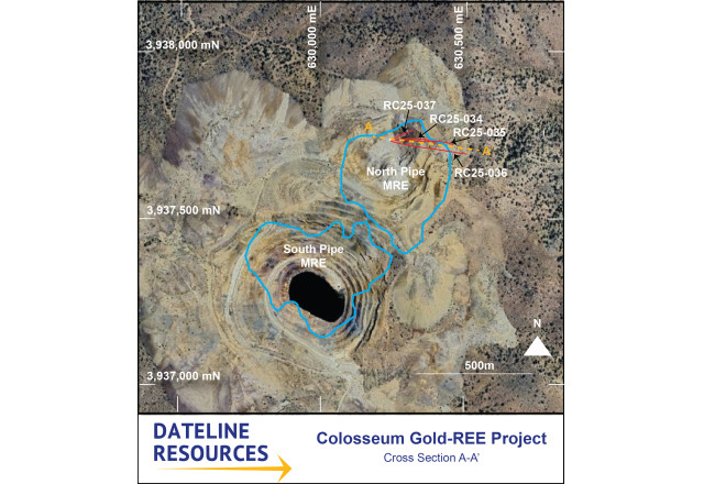 SAN BERNARDINO, Calif., January 12, 2026 (Newswire.com) - Dateline Resources Limited (ASX:DTR)(OTCQB:DTREF)(FSE:YE1) (Dateline or the Company) is pleased to announce drilling results at its 100%-owned Colosseum Gold and Rare Earth Element (REE) Project in San Bernardino County, California. The results from a further six diamond and ten reverse circulation (RC) holes drilled around the South and North Pits have provided gold assay results that improve the continuity of mineralisation and in several instances, deliver results outside the mineral resource envelope.