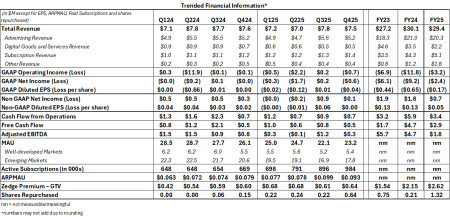 (in $M except for EPS, ARPMAU, Paid Subscriptions and shares repurchased) | Q124 | Q224 | Q324 | Q424 | Q125 | Q225 | Q325 | Q425 | FY23 | FY24 | FY25 | |||||||||||||||||||||||||||||||||